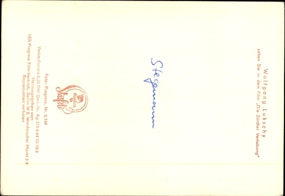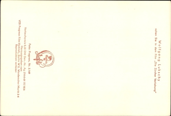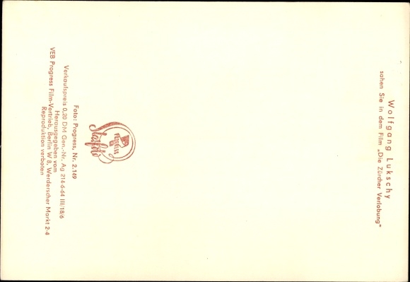 Ak Schauspieler Wolfgang Lukschy, Portrait, Progress Starfoto