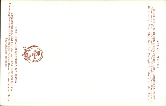 Ak Schauspieler Albert Garbe, Portrait, DEFA, Das verurteilte Dorf