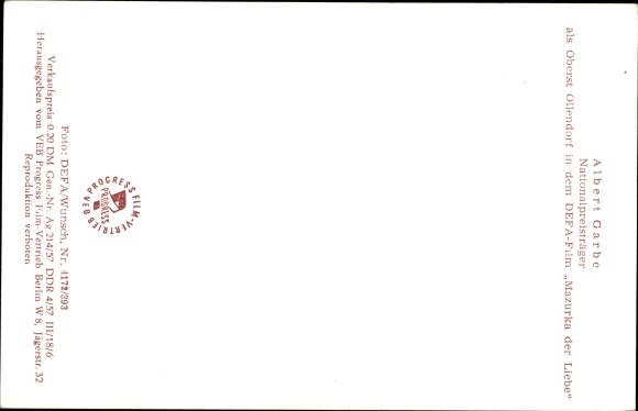 Ak Schauspieler Albert Garbe als Oberst Ollendorf in Mazurka der Liebe