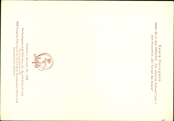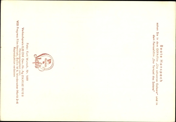 Ak Schauspielerin Beate Hanspach, Portrait, Der Tempel des Satans