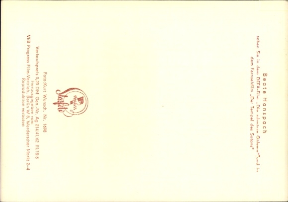 Ak Schauspielerin Beate Hanspach, Portrait, Autogramm