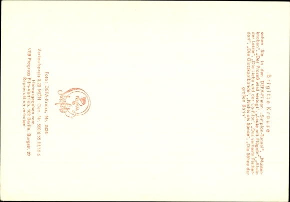 Ak Schauspielerin Brigitte Krause, Portrait, Defa, Simplontunnel