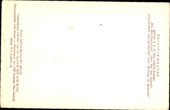 Ak Schauspielerin Brigitte Krause, Portrait, DEFA Film Die Buntkarierten