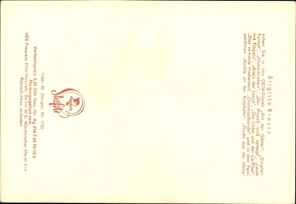 Ak Schauspielerin Brigitte Krause, Die Buntkarierten, Der Rat der Götter, Portrait