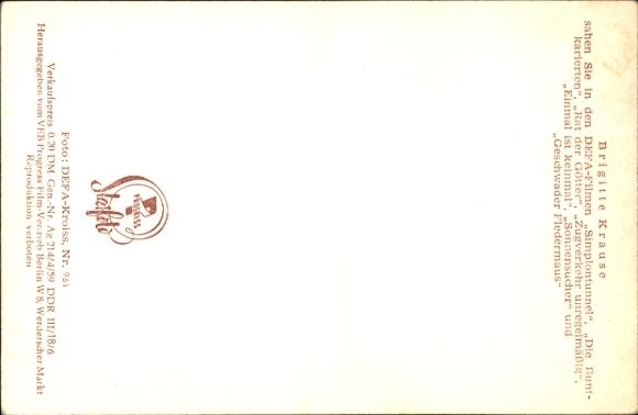 Ak Schauspielerin Brigitte Krause, Filme Der Rat der Götter, Michaels Rückkehr