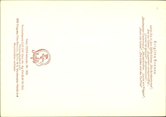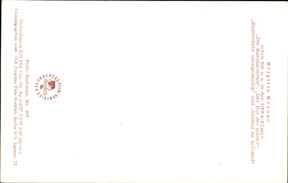 Ak Schauspieler Brigitte Krause, Einmal ist keinmal