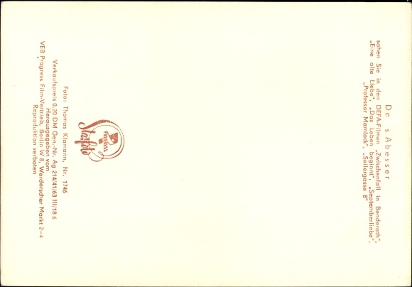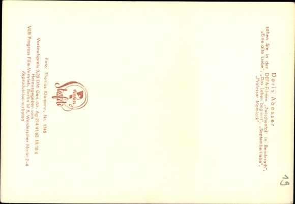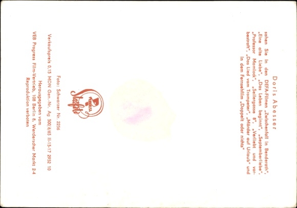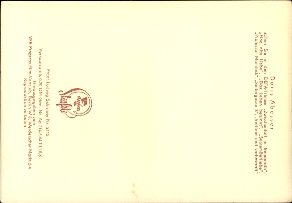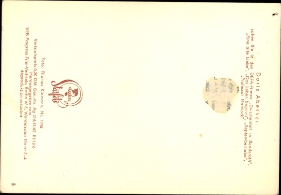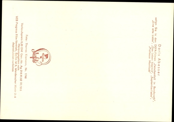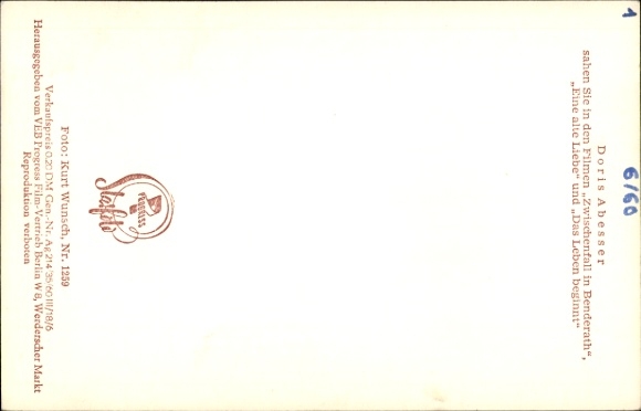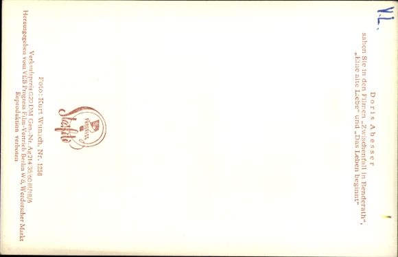 Ak Schauspielerin Doris Abesser, Portrait, DEFA Film, Seilergasse 8