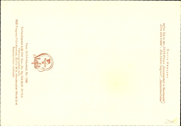 Ak Schauspielerin Doris Abesser, Portrait, DEFA Film, Doppelt oder nichts