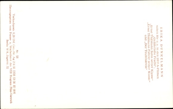 Ak Schauspielerin Erika Dunkelmann, DEFA Film, Stärker als die Nacht, Portrait