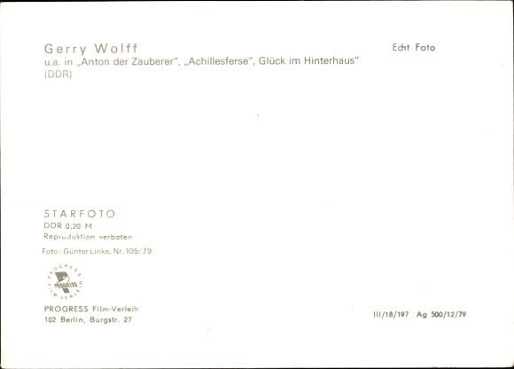 Ak Schauspieler Gerry Wolff, Stärker als die Nacht, Polonia Express, Portrait, Defa