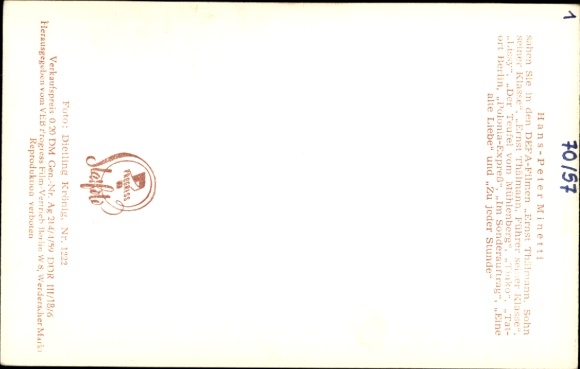 Ak Schauspieler Hans Peter Minetti, Reservist für den Tod, Ernst Thälmann, DEFA