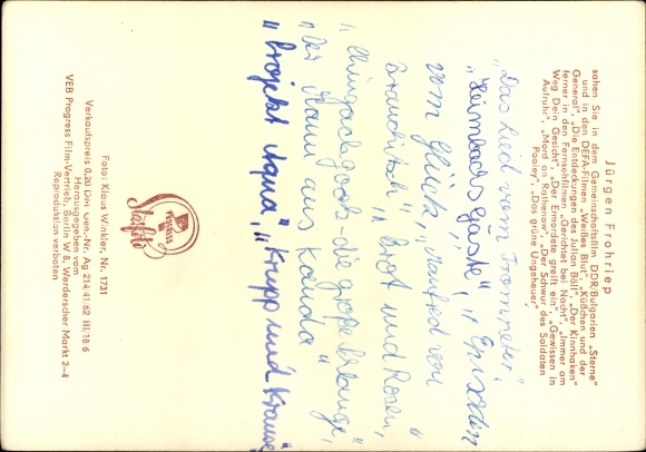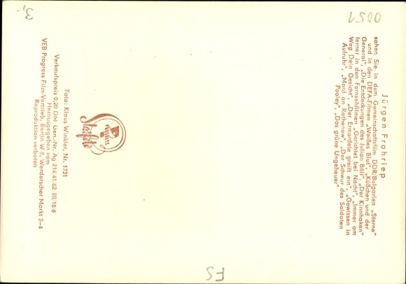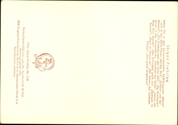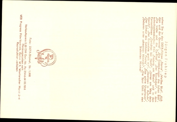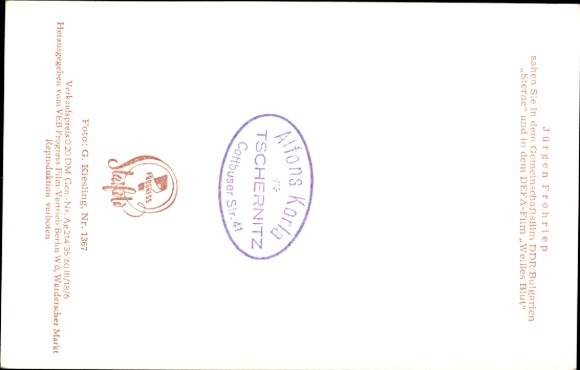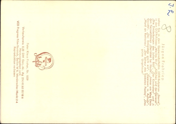 Ak Schauspieler Jürgen Frohriep, Portrait, Defa Film, Sterne