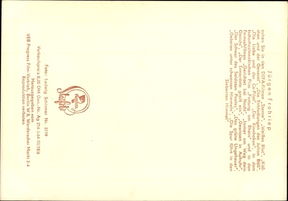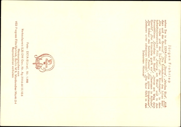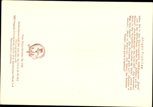 Ak Schauspieler Jürgen Frohriep, Portrait