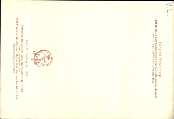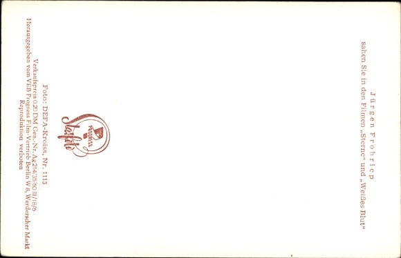 Ak Schauspieler Jürgen Frohriep, DEFA, Weißes Blut, Sterne, Portrait