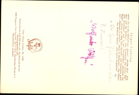 Ak Schauspieler Jürgen Frohriep, Filme Weißes Blut, Gerichtet bei Nacht