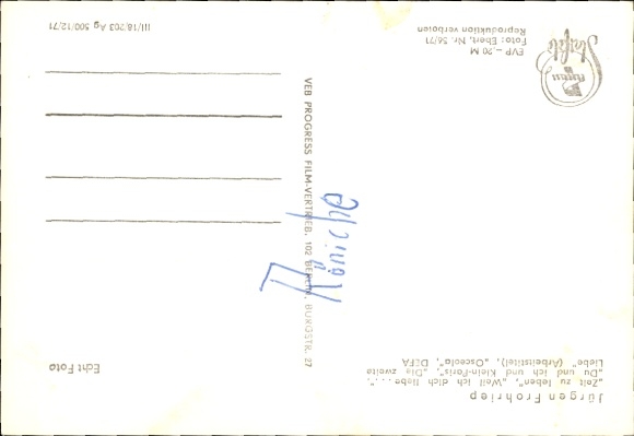 Ak Schauspieler Jürgen Frohriep, Portrait, Zeit zu leben, DEFA Film