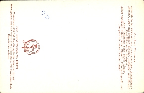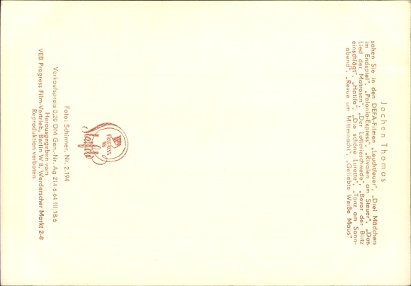 Ak Schauspieler Jochen Thomas, DEFA, Das Lied der Matrosen, Portrait