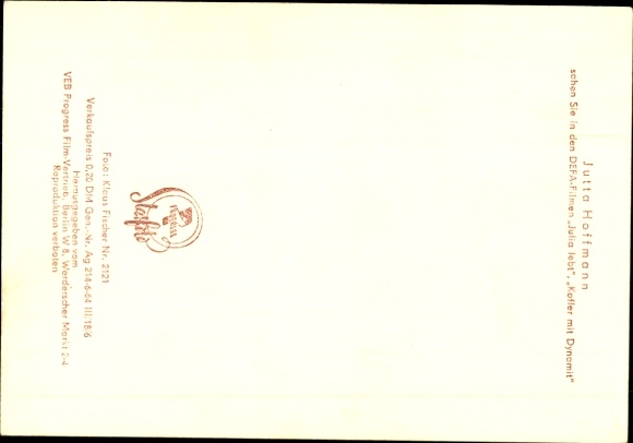 Ak Schauspielerin Jutta Hoffmann, Portrait, DDR Fernsehfunk, DEFA
