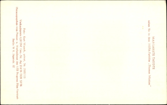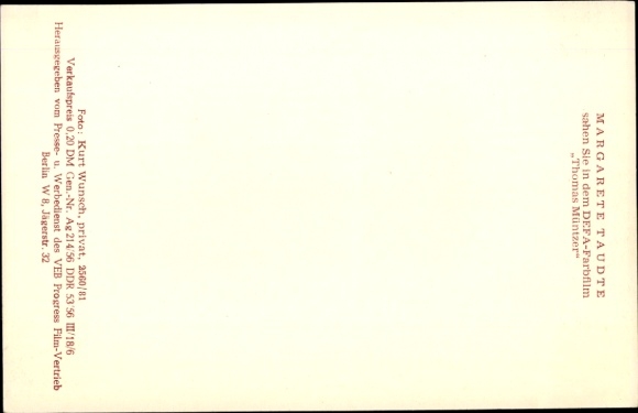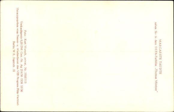 Ak Schauspielerin Margarete Taudte, DEFA Film, Thomas Müntzer, Portrait