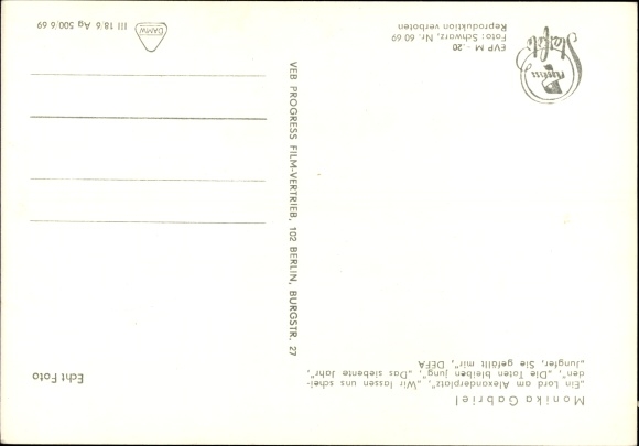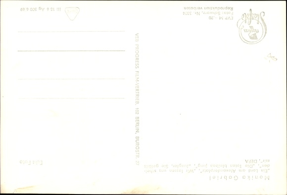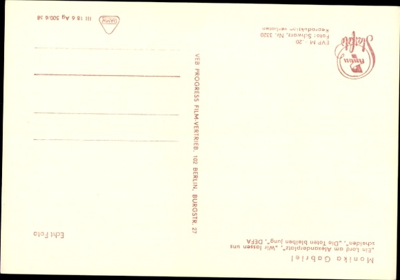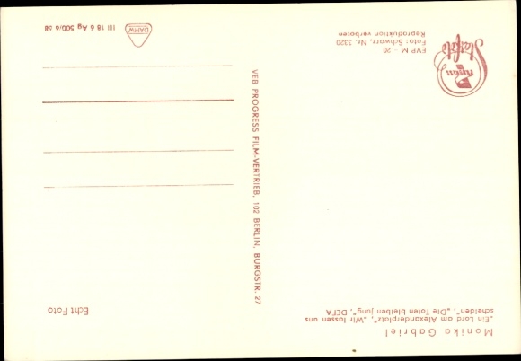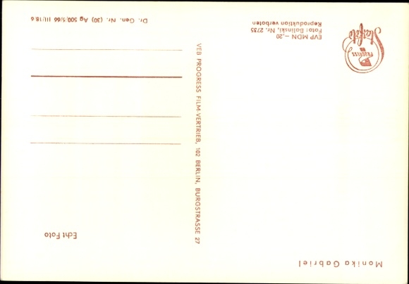 Ak Schauspielerin Monika Gabriel, Ein Lord am Alexanderplatz, Die Toten bleiben jung, DEFA
