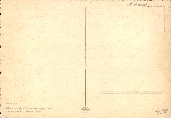 Ak Berlin Mitte, Grenze, Brandenburger Tor, Berliner Mauer, Westberlin