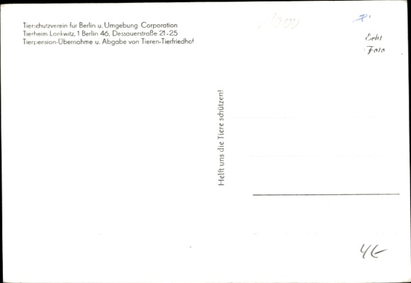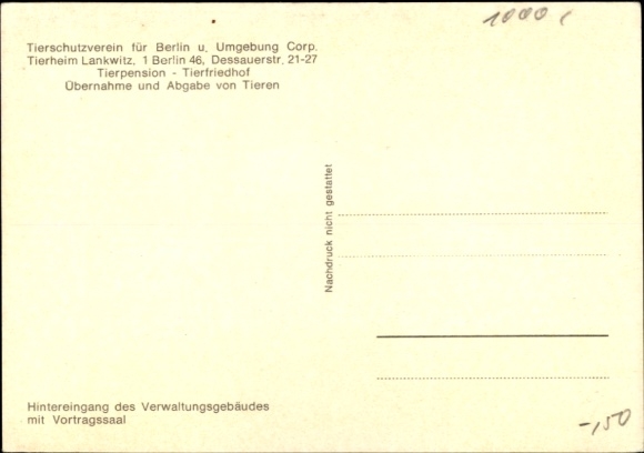 Ak Berlin Steglitz Lankwitz, Tierheim, Dessauer Str. 21-27, Tierschutzverein Berlin