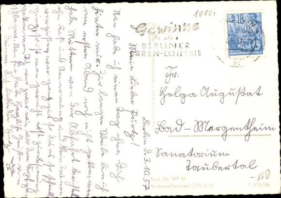 Zustand siehe Scan, 1961, gelaufen - ca 15 cm X 10 cm