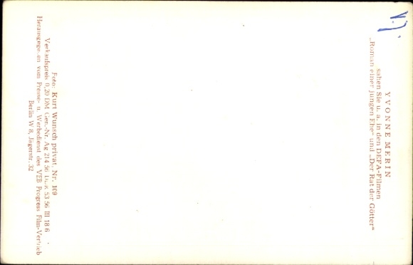 Ak Schauspielerin Yvonne Merin, Portrait, DEFA Film Roman einer jungen Ehe